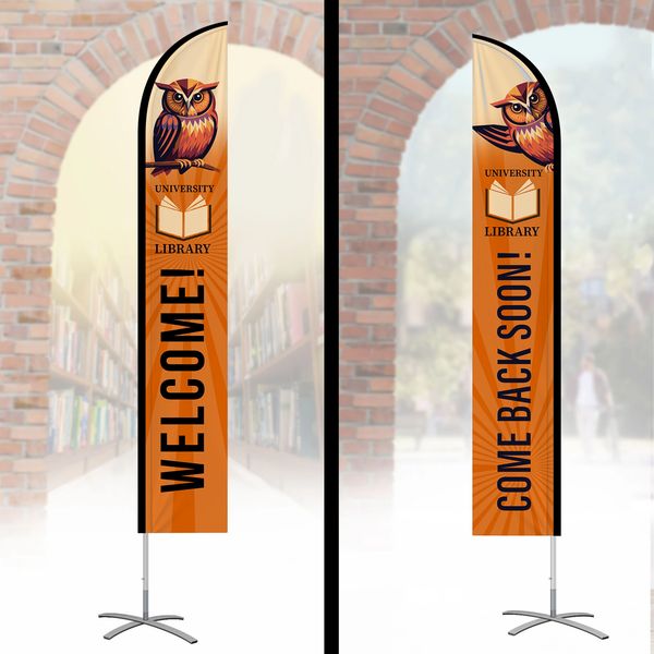 We offer custom POLE FLAGS and FEATHER FLAGS in a 4oz polyester material that is scratch resistant and washable. Available for indoor or outdoor use, flags have great eye catching shapes to grab your customer's attention. Flags come in a variety of shapes and sizes. Contact us today for more information!